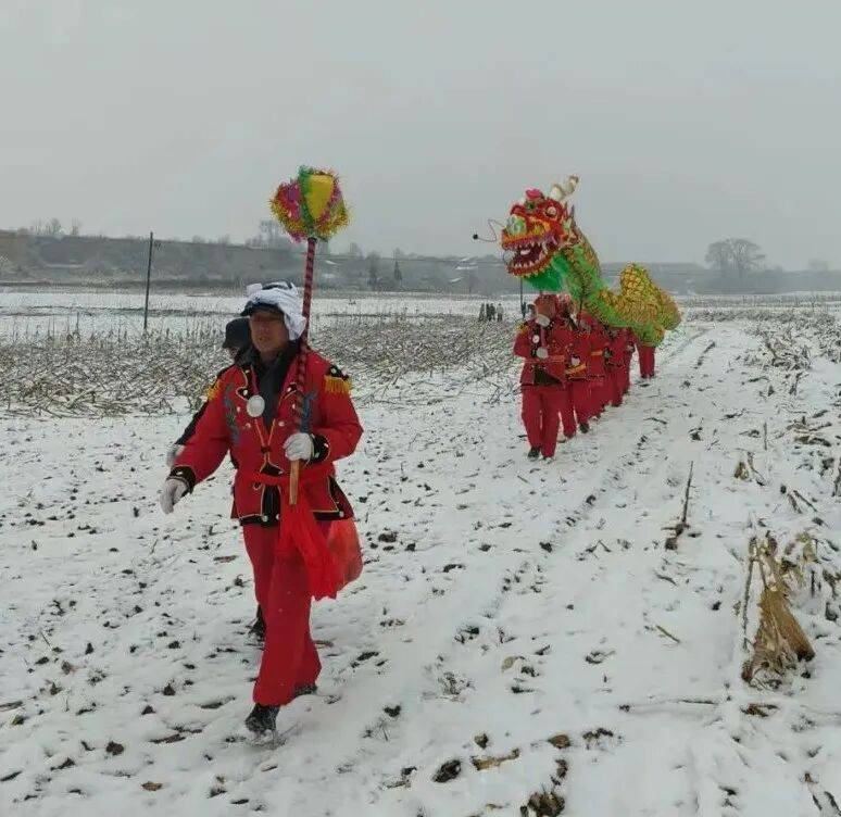 行至半路,火龙、雄狮缓缓停下,女队员们手举“水龙”走向泉眼,摆上果品,点燃鞭炮,双手合十虔诚祈福。“愿咱村今年庄稼丰收,家家户户都有好光景!”水龙在泉眼旁缓缓“饮水”,随后折返与火龙、雄狮汇合,锣鼓声、欢呼声交织在一起。舞龙舞狮队踏着积雪往回走,瑞雪映着红火的龙狮,成为冬日里最动人的风景,这场承载着农耕文明与民俗记忆的仪式,在欢声笑语中圆满完成。