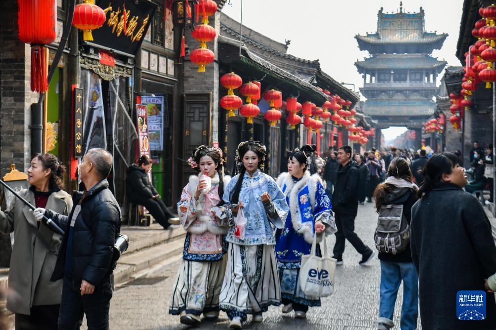 春节元宵节期间,山西太原古县城、平遥古城、榆次老城等景区年味浓郁,吸引游客前来参观游览。