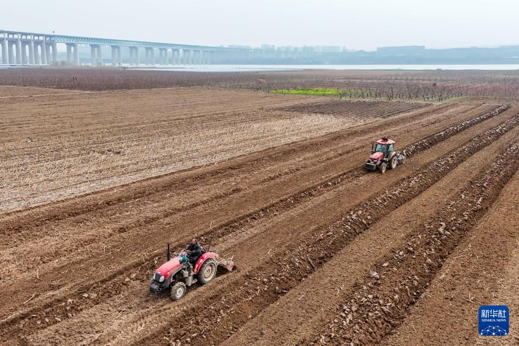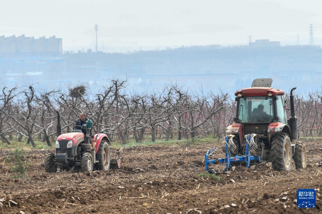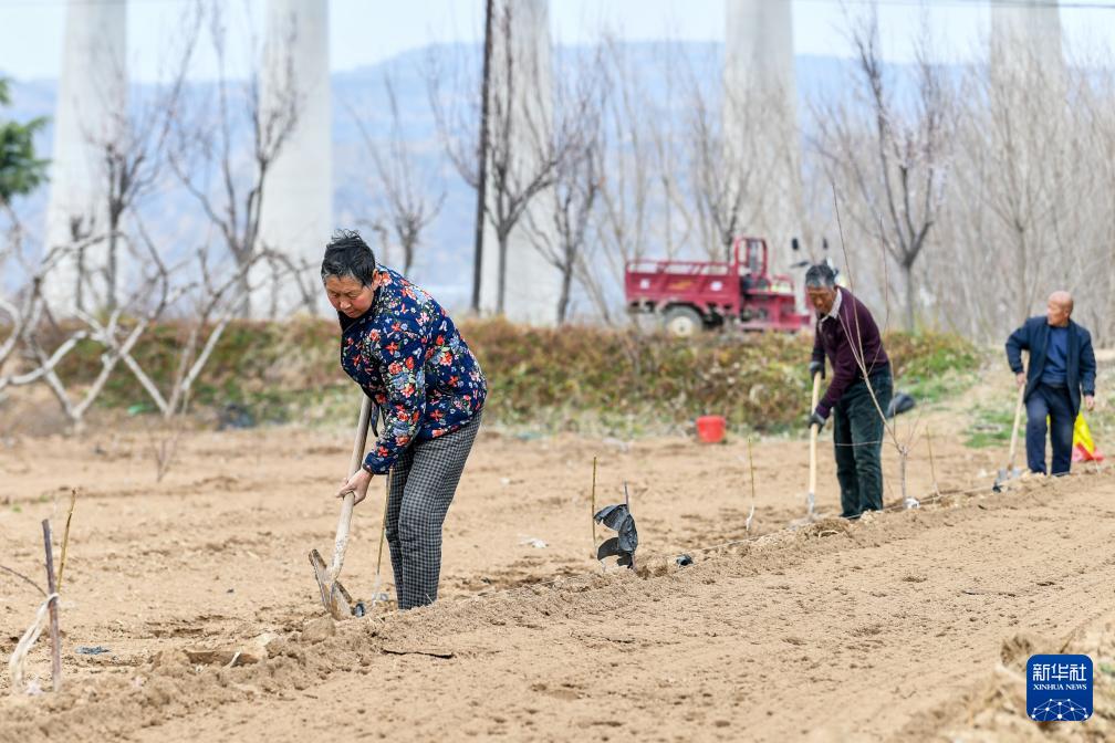 春分将至,山西省运城市平陆县黄河岸边的农民抢抓农时开展春耕春管,田间地头一派忙碌景象。